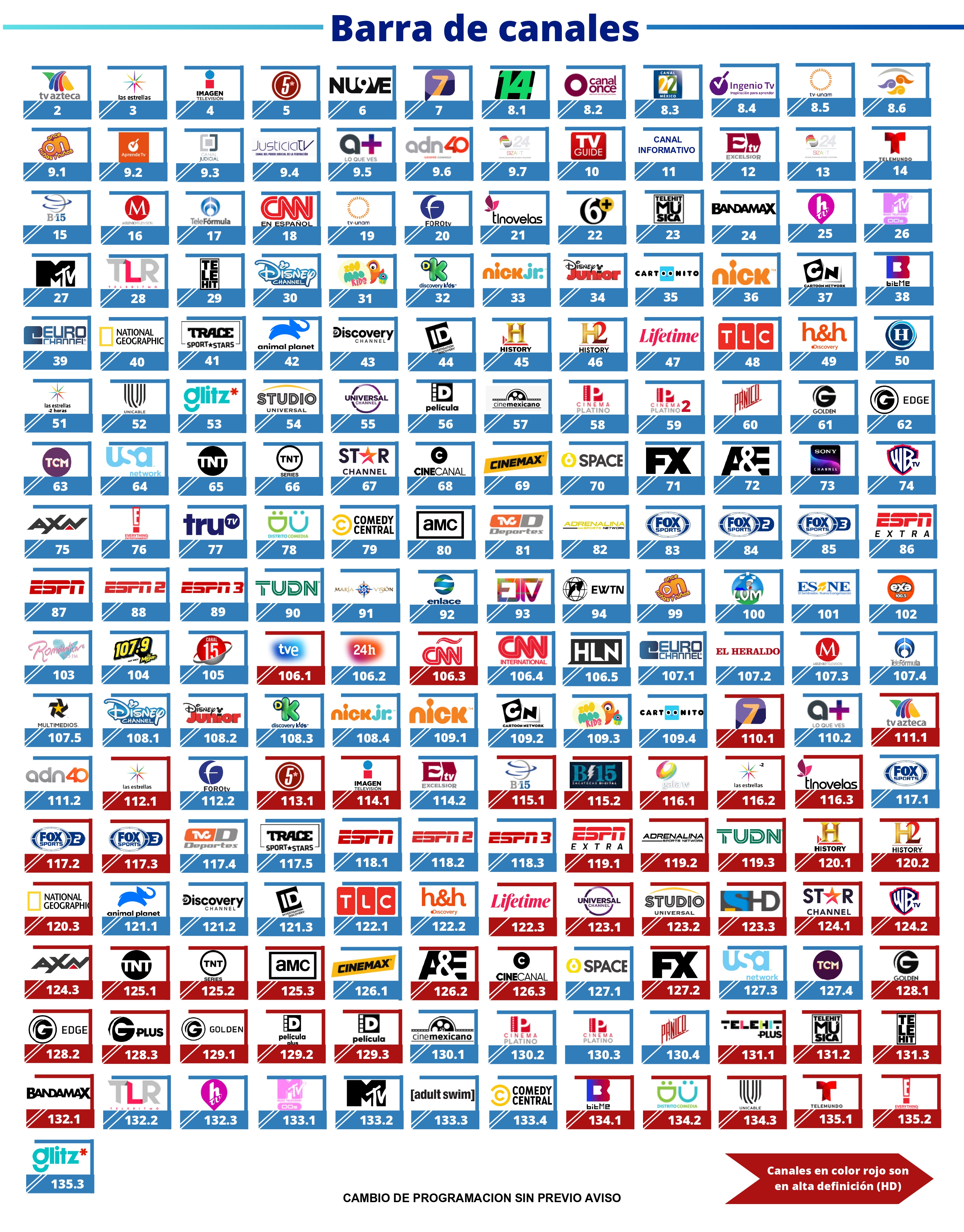 , NOS ESFORZAMOS POR OFRECERTE UNA BARRA DE CANALES ORDENADA DE ACUERDO AL GÉNERO DE LOS CANALES...