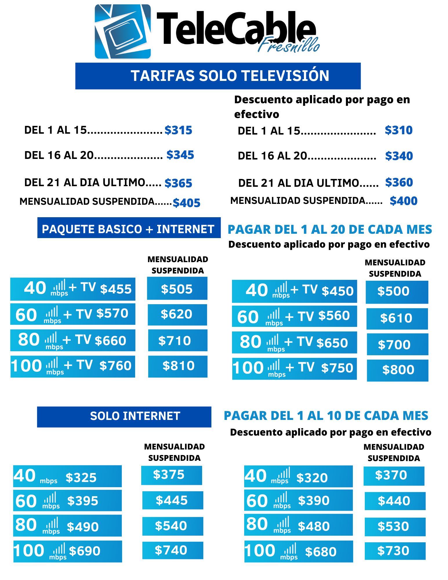EN PAQUETE BASICO + INTERNET, PAGA DEL 1 AL 20 DE CADA MES 15 HD INCLUIDOS RECONEXIÓN: $50